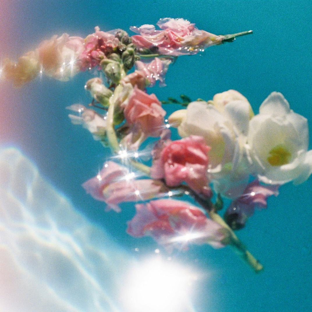 scene: a dreamy, fragrant garden atop glistening water. rose, neroli, lotus, and lavender bloom with a surreal glow. douse yourself in these waters to purify the body, mind, and spirit. do nothing without intention.